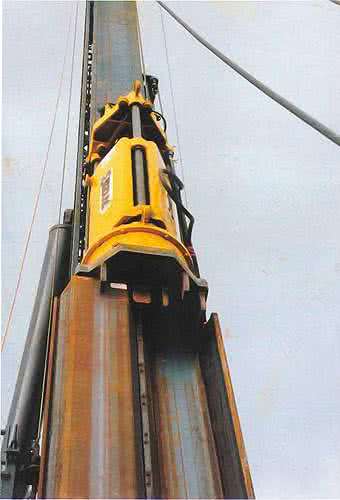 Вторая технология заключается в предварительном бурении скважин. В скважины под давлением закачивают цементно-песчаный раствор, потом погружают сваи. Таким образом упрощается процесс погружения, минимизируются вибрации, а шпунты крепятся в грунте раствором.