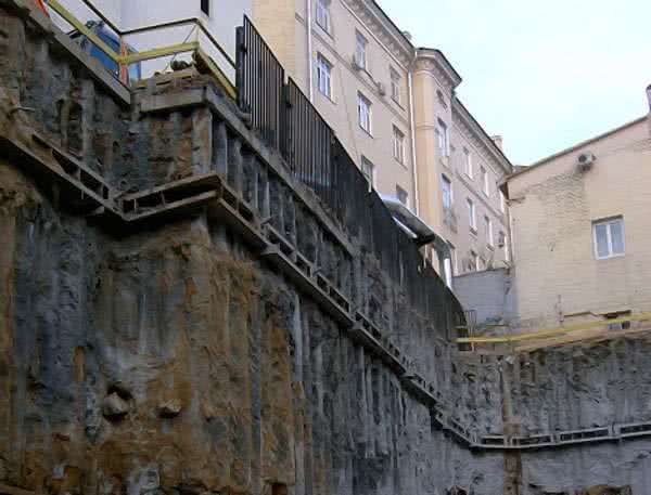 Система с анкерным креплением может быть опущена до середины глубины котлована. В случае большой глубины поясов может быть несколько на разных уровнях.